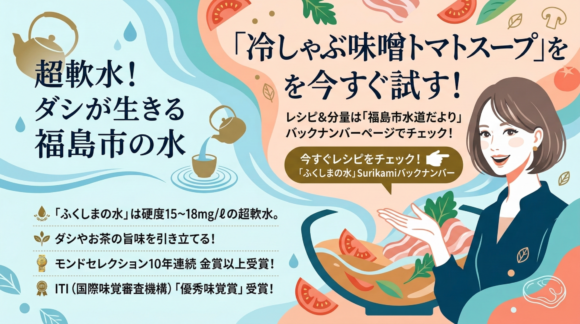 福島市の水道水、お茶やダシが生きる超軟水です!