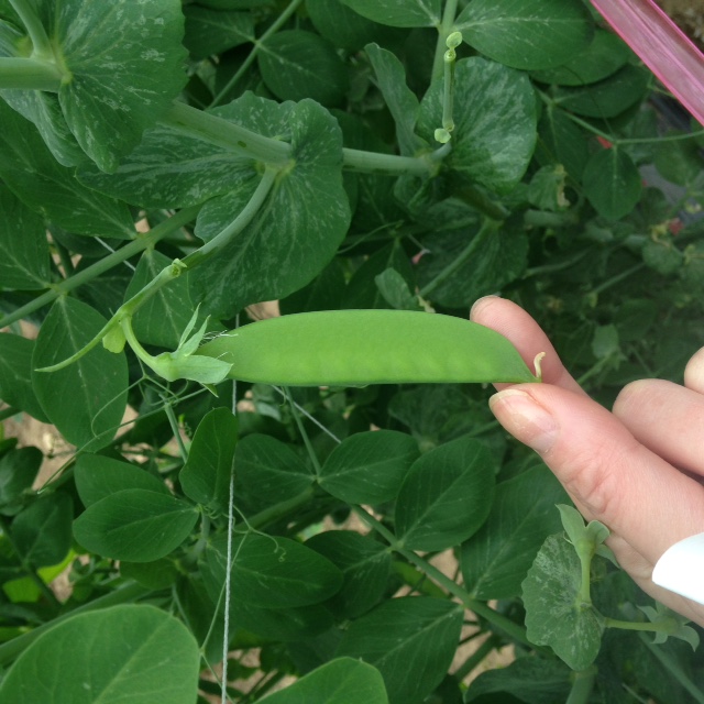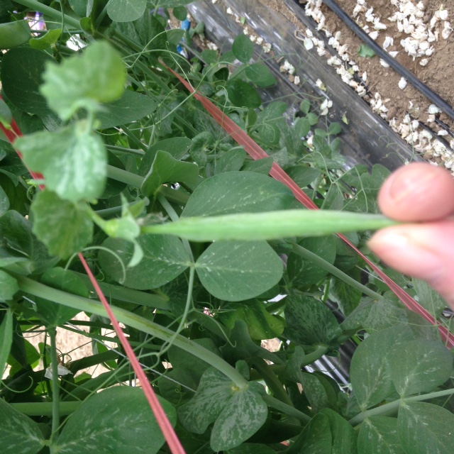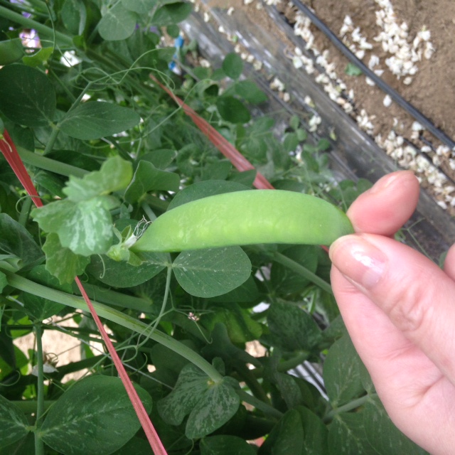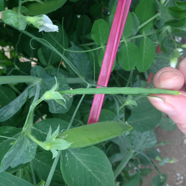 - おいしいさやえんどうの見本。平たい!